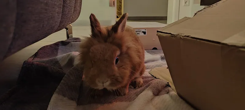Familiäre Umstände zwingen seine Familie leider, nicht eine Kaninchenpartnerin zu Gisbert zu nehmen, sondern ihn in Obhut zu einer neuen Partnerin zu geben.
