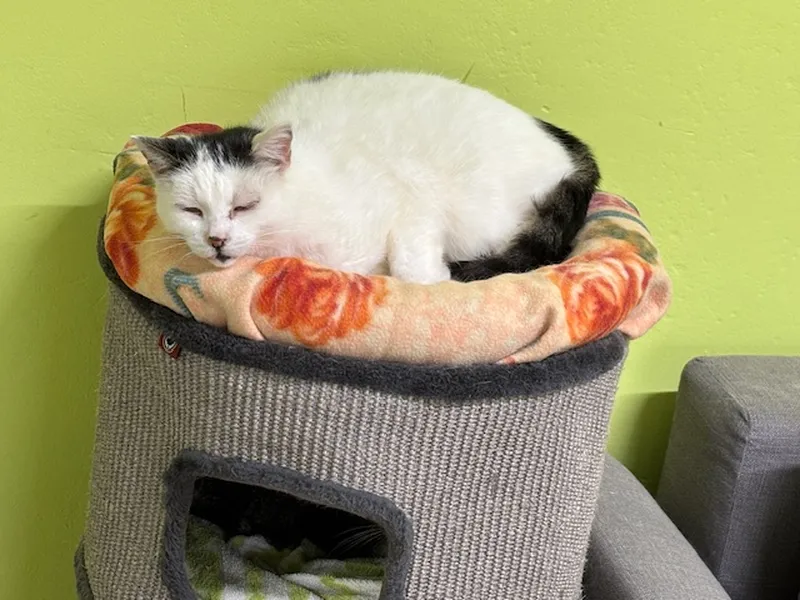 Ein Auge von Moritz ist etwas trüb und er müsste 3x täglich Augentropfen bekommen. Das können wir jetzt noch nicht darstellen, aber vielleicht seine künftige Familie in naher Zukunft?