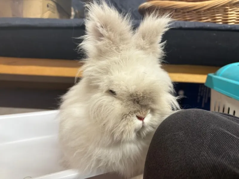 Die beiden Süßen fanden in der Rubrik Privatvermittlung leider kein passendes zu Hause und nun sind sie bei uns. Beide wurden 2021 geboren, sind geimpft und kastriert. Klopfer hat aufgrund der Züchtung sehr viel Fell. Kaninchen mit Fell diesen Ausmaßes müssen immer kontrolliert werden: gibt es Haarbüschel, die nicht mehr auseinander gehen und heraus geschnitten werden müssen? Gibt es Grannen im Fell, die in die Haut pieken können, wenn man diese nicht sieht und entfernt? Kann das Kaninchen mit dem vielen Fell um die Augen herum überhaupt richtig sehen?