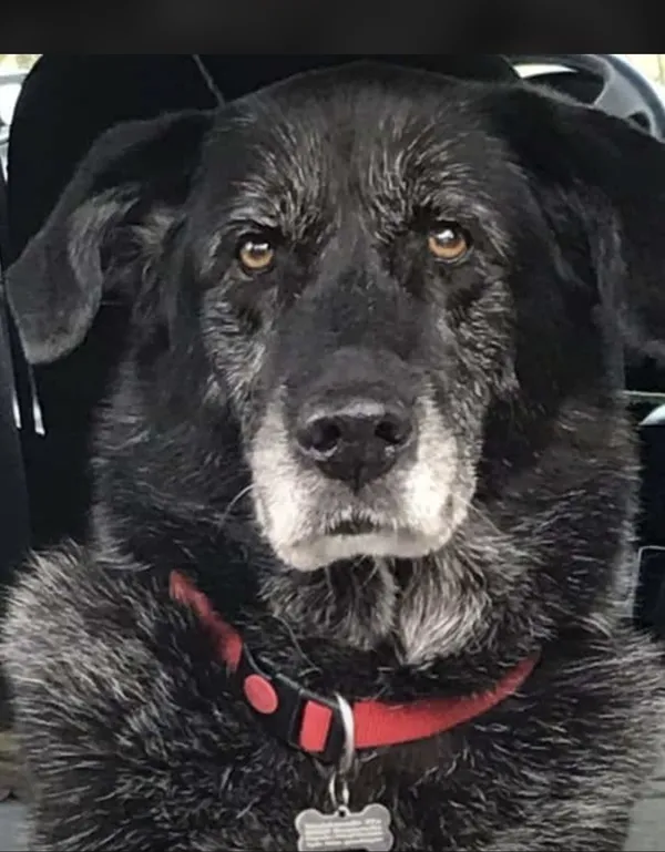 Nun ist dieser großartige Hund über die Regenbogenbrücke gegangen, er ist friedlich eingeschlafen.
