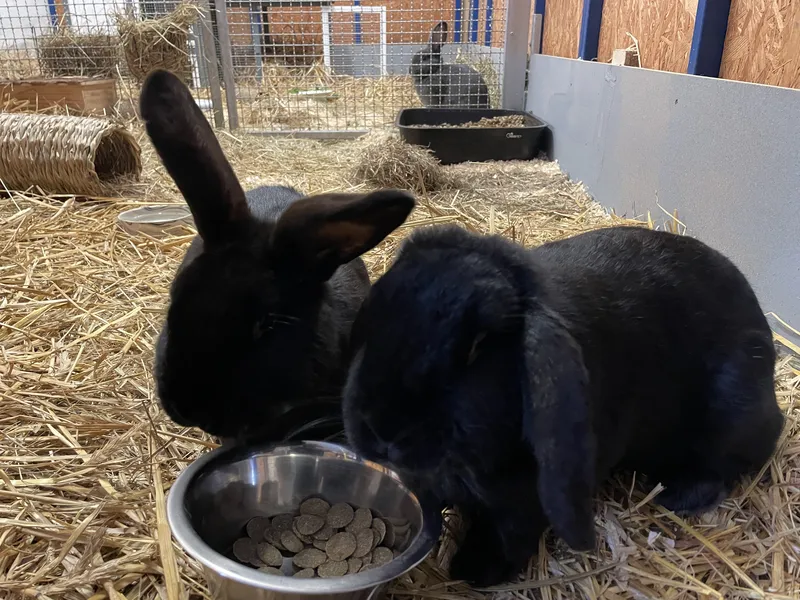 Seit kurzem leben die beiden Kaninchen nun in einer WG :-)Roger, das Zwergkaninchen, ist ca, 5 Jahre jung und Lieschen...